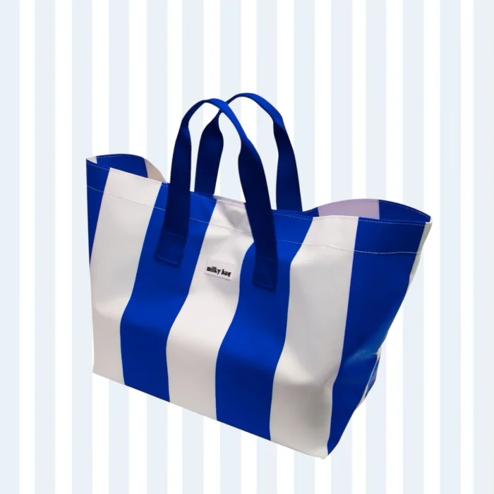 MEASUREMENTS: Striped Milky: Width 57cm, Height 30cm, Depth 18cm FEATURES: 100% handmade 100% durable flexible material Super lightweight and waterproof "Circle" figure embroidered on the front surface Design patent®️ Female producer