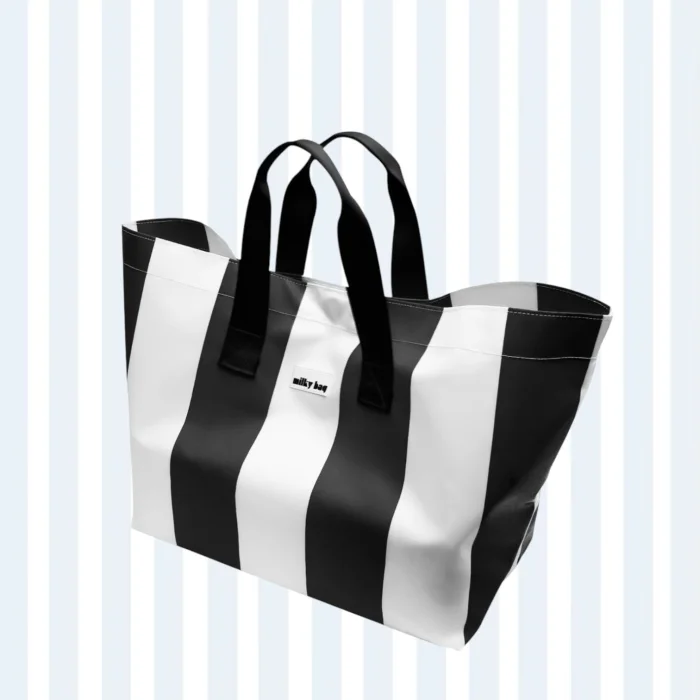 MEASUREMENTS: Striped Milky: Width 57cm, Height 30cm, Depth 18cm FEATURES: *100% handmade *100% durable flexible material *Super lightweight and waterproof *"Circle" figure embroidered on the front surface *Design patent®️ *Female producer