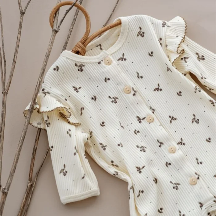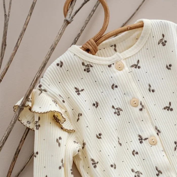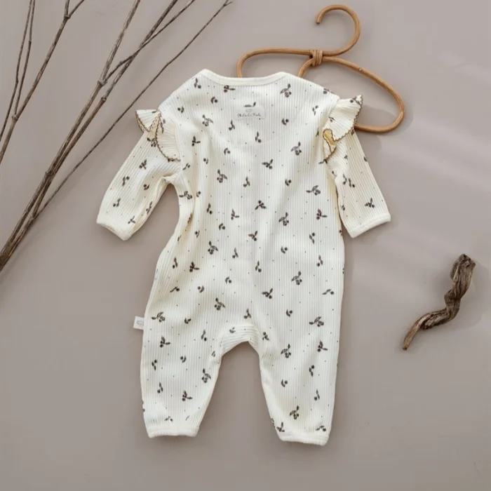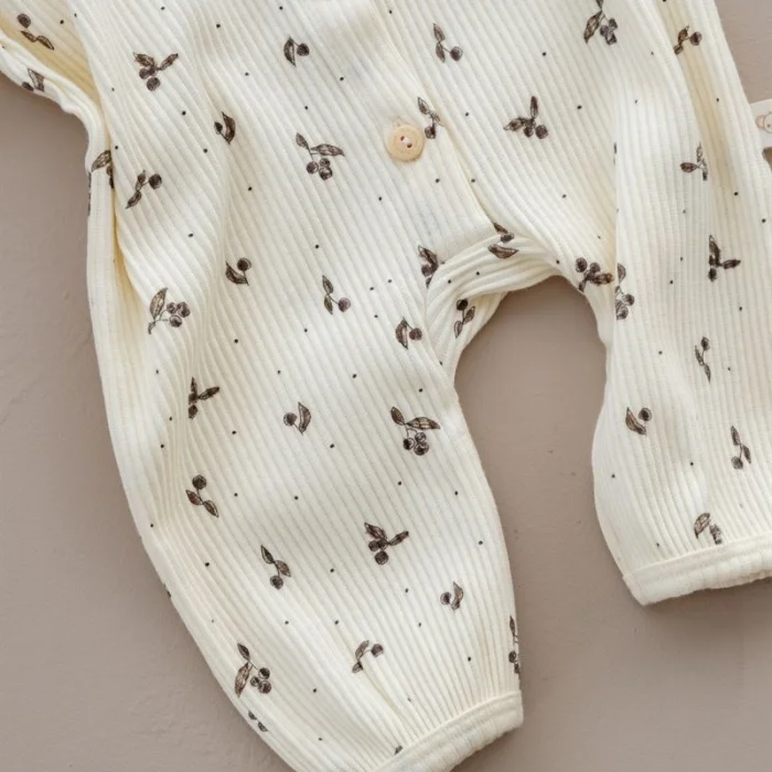 -Kiraz Fancy Girls Series Jumpsuit offers your baby's elegance and comfort together.; - It protects your baby's arms from the cold with its long-sleeved design.; - Its fabric, consisting of a blend of 95% cotton and 5% elastane, is gentle on your baby's skin with its soft texture.; - Its straight-leg design provides comfortable use without restricting freedom of movement.; - It offers a modern and stylish look with its crew neck detail.; - Cute ribbon pattern, It forms an eye-catching detail of the jumpsuit.; - The beige color adds a warm and vibrant color to your baby's skin, while the unisex design makes it suitable for both girls and boys; - Regular length cut allows your baby to move freely; - The camisole weave type fits your baby's body perfectly with its flexible structure; - While it offers a trendy look with its patterned and oversize pattern, the buttoned closure shape allows easy use.; - Knitted fabric type offers durability and comfort together.; It is designed to suit your baby's development; - The type of printed product increases the aesthetic value of the jumpsuit.; - With the Cool & Comfort persona, your baby will look comfortable and stylish in any environment.; - Ideal for Casual/Everyday use; It can be easily preferred in your baby's daily activities.; - With the sustainability detail, you will make an environmentally friendly choice.; - Its beltless design provides a simple and stylish look; - It can be easily cleaned in accordance with the washing instructions at 30 degrees.; - Suitable for all seasons, this jumpsuit maintains your baby's comfort throughout the year.; - You are proud of being locally produced and contribute to the local economy.