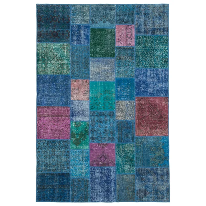 Patchwork Carpet is 205 cm wide, 300 cm long and approximately 5 mm thick. It weighs an average of 18 kg. It is made with hand-spun wool and cotton. It gets its colors from root dyes obtained naturally.