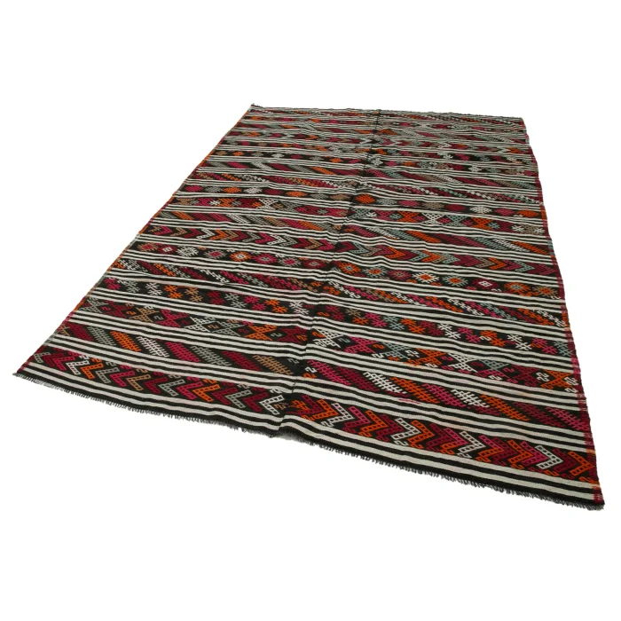 Vintage Cicim Rug is 194 cm wide, 292 cm long, 5 mm thick, and weighs an average of 12 kg. It is made of hand-spun 100% Organic Wool and Bristle. Root dye obtained naturally is used. / Vintage Cecim kilims are on 194 cm widht and 292 cm lenght and the pile height is 5mm, the approximate weight of the rug is 12 kg. It's 100% handknotted wool and goat hair rug. It's made from the natural dye.