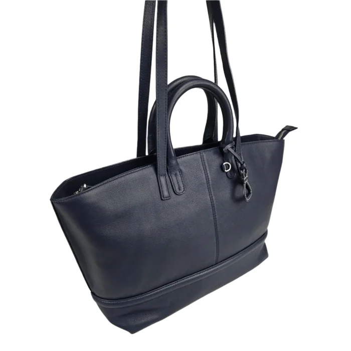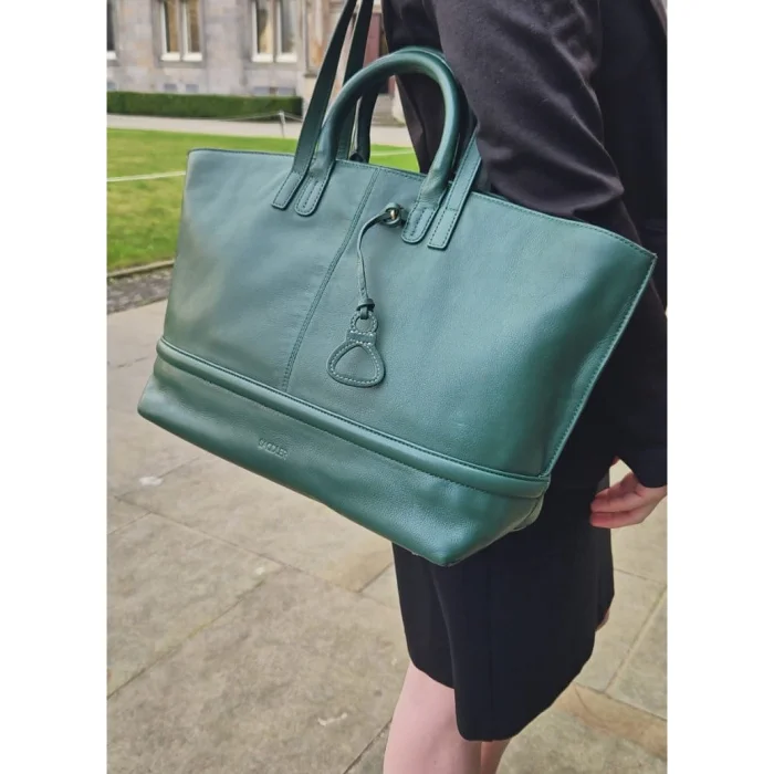 Victoria Tote – A Stylish and Versatile Everyday Essential The Victoria Tote is a beautifully designed handbag that combines elegance with practicality. With its distinctive wide-top shape and thoughtfully crafted features, this bag is perfect for work, shopping, or your everyday needs. The top zipper opens to reveal a spacious main compartment, complete with: Twin vertical phone pockets to keep your devices secure and organised A secure zip pocket for valuables On the exterior, the bag features: Grab Handles: Short, sturdy handles for easy carrying Shoulder Straps: Longer straps for comfortable shoulder wear, offering versatile carrying options Its sleek design, featuring a wide top and tapered base, provides plenty of room for your essentials while maintaining a sophisticated silhouette. Dimensions: Base: 34cm wide x 14cm deep Height: 28cm (at the tallest point) Top Width: 46cm Available Colours: Black, Bordeaux, Tan, Green, and Navy Key Features: Unique wide-top design with zip-top closure Spacious interior with twin phone pockets and a secure zip pocket Dual carrying options: grab handles and longer shoulder straps Durable and stylish, perfect for everyday use Includes Saddler stirrup leather charm and floral dust bag Why You’ll Love It:Part of the Saddler Heritage Collection, the Victoria Tote is handcrafted in our Carbon Neutral Certified workshop, reflecting timeless craftsmanship and sustainable practices. Its versatile design, generous storage, and elegant style make it a must-have for your accessory collection. Add the Victoria Tote to your wardrobe – a perfect combination of style and functionality.