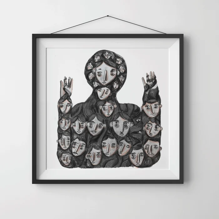 Drawings made with markers, dry and watercolors, then printed in giclée quality on 210g matte Hahnemühle enhanced paper. This technique; Art printing can capture 98% of the original colors, and these colors are preserved for about 200 years in a healthy way. *Will be sent by roll without frame. *Print size is 21x21. *Frame allowances are given extra. *Not dimensioned