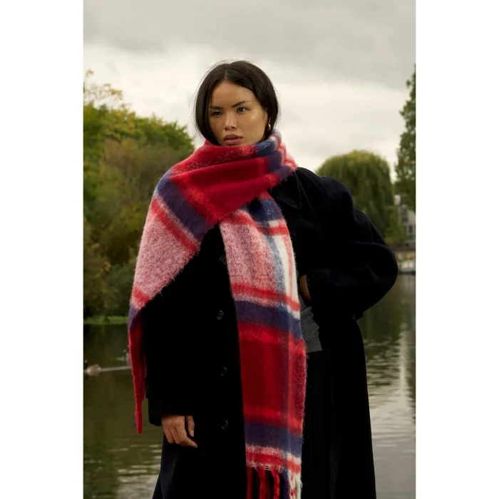 Replaid Oversized Recycled Bottle Scarf - Red & Navy