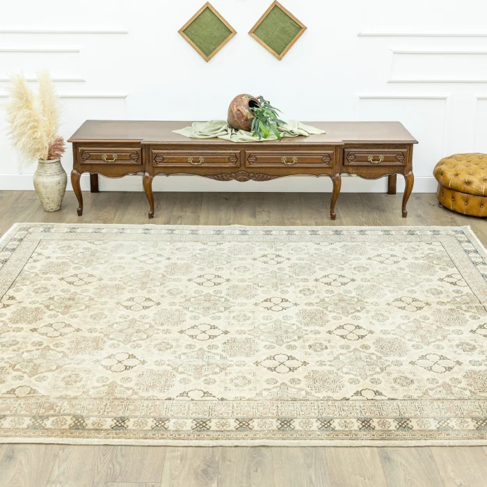 is possible to find the design suitable for the concept you want in Soho Antiq carpet models! Our Soho Antiq carpet models are made entirely of natural wool and cotton and are all handwoven. The carpet has a thickness of 1 to 3 cm and its length is 202 x 294 cm. Shades of brown, one of the various color options available in our carpet catalog, are the main color of the carpet. In addition, other colors in the carpet model are beige and multicolored. Soho Antiq takes carpet models to the next level with its historical and local touches. The patterns on the carpet have designs called sprinkled patterns. This carpet, which was woven in the Isparta region, has the touches of the 1980s and thanks to the shaving process applied to the carpet after weaving, the pile height has been reduced to a minimum, which has given the carpet a smooth and modern appearance. Our Soho Antiq carpets are designed with completely special hand weaving techniques.