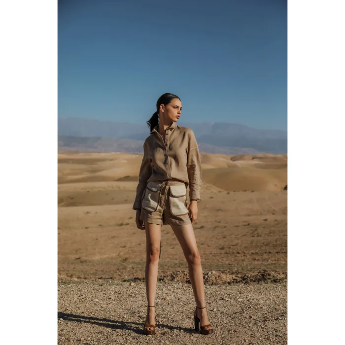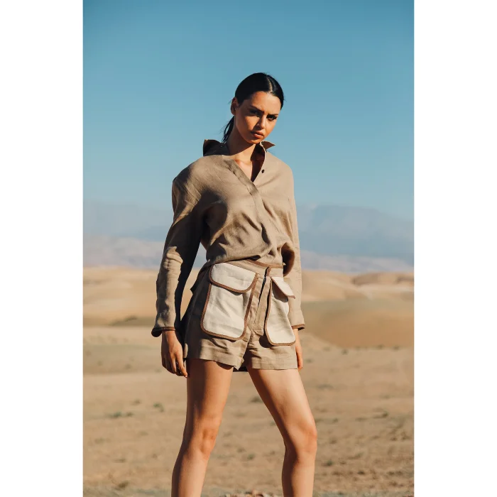 Product: Purity Piping Pocket Detailed Linen Shorts