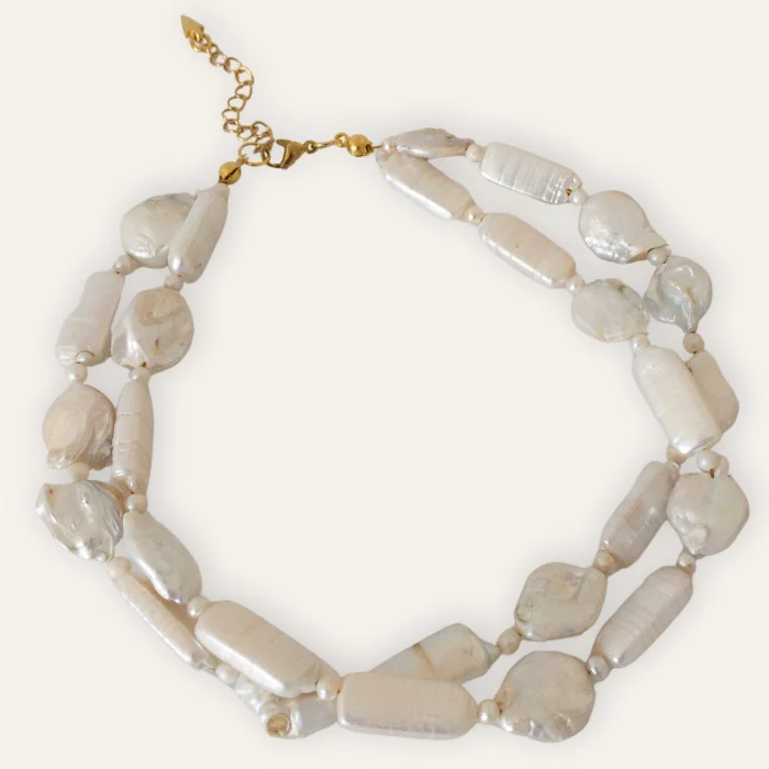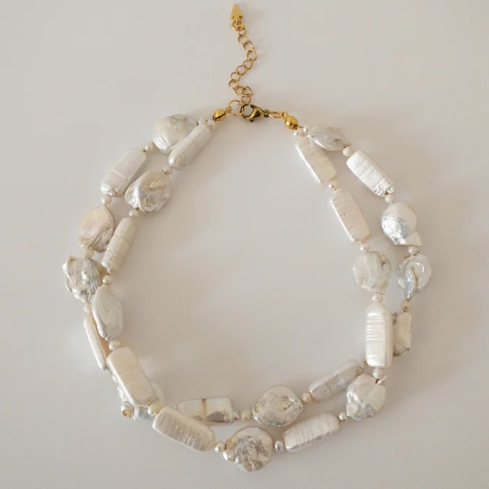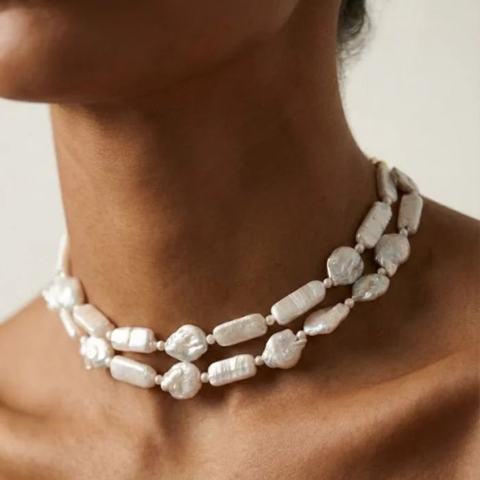 • 20*6 rectangular is designed using 20 mm shapeless baroque pearls and 4 mm pearls.