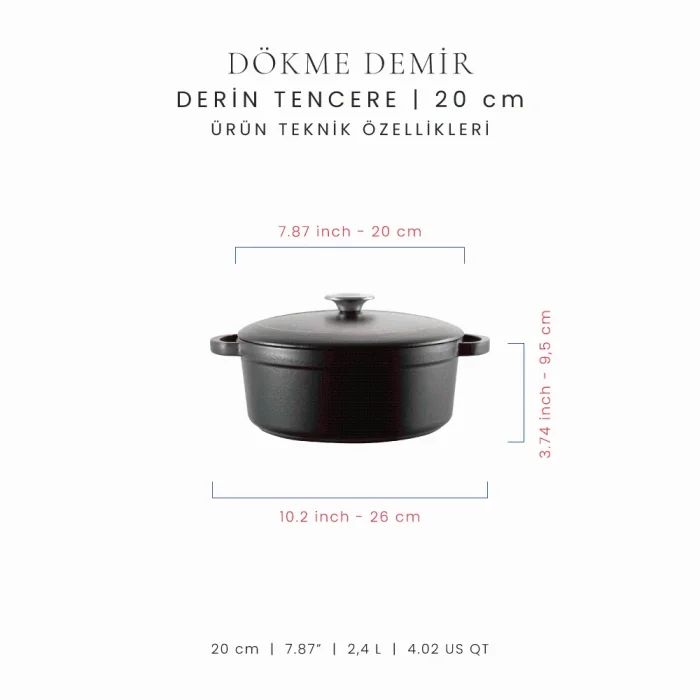 Your Voeux cookware, which is 100% cast iron, preserves all its vitamins, minerals and fiber values while your food cooks in its own juice, with its ability to spread heat evenly. Your food retains its heat for a long time with your Voeux cookware. The inside of your Voeux cookware is covered with durable enamel with high acid and corrosion resistance. The enamel that covers the inside of your pot is not harmful to your health as it does not contain any antibacterial and carcinogenic additives. Your Voeux cookware, which is 80 percent handmade, preserves its vivid colors for a long time with two layers of special paint. It is environmentally friendly with its production from natural materials and high energy saving feature. With your Voeux cookware, you can cook many different types of dishes in the healthiest way with the use of less oil. With the feature of your cast iron pot entering the oven, you can cook many dishes such as bread and cakes with your pot. Your cookware is dishwasher safe. However, if you want your product to be long-lasting, we recommend that you wash it by hand. Your Voeux cookware comes with a lifetime limited warranty.*