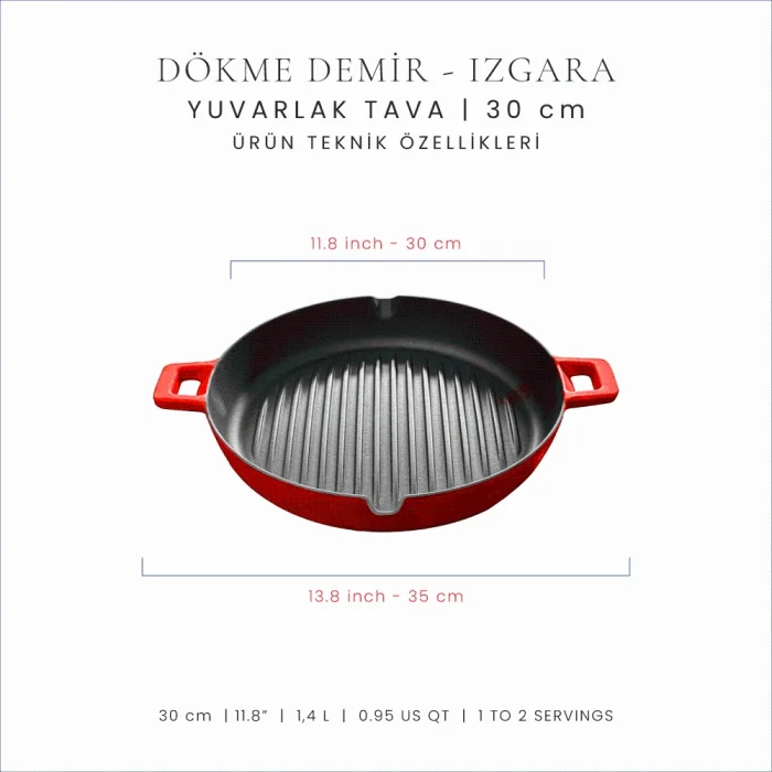 Product: L'amour Kırmızı Döküm Izgara Tava 30 Cm