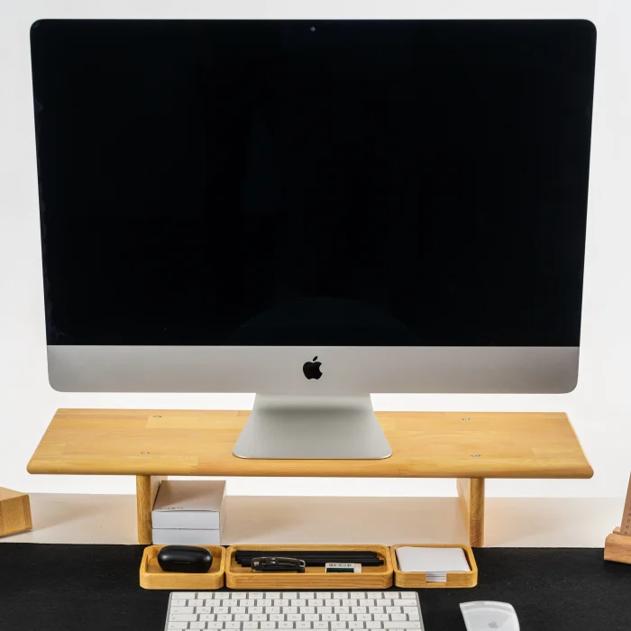 Product Dimensions: 23.5x68.5x10.8cm Width: 23.5cm Length: 68.5cm Height: 10.8cm Space Between Two Feet: 38cm Manufactured according to the standards of ergonomic vision level. It allows you to prevent problems such as back and neck pain. Shipped disassembled. The screws are included with the product and the holes are drilled on the top of the product for easy installation. It has a carrying capacity of up to 120Kg. All of our products are produced in our wood workshops in Izmir. Since it is produced entirely from natural wood, there may be color and pattern differences between the products. The product is made of pine wood, water-based varnish is used, which is harmless to health. You can use it for a long time with peace of mind. The varnish made to protect the products is handcrafted by our certified teachers in the art workshop.