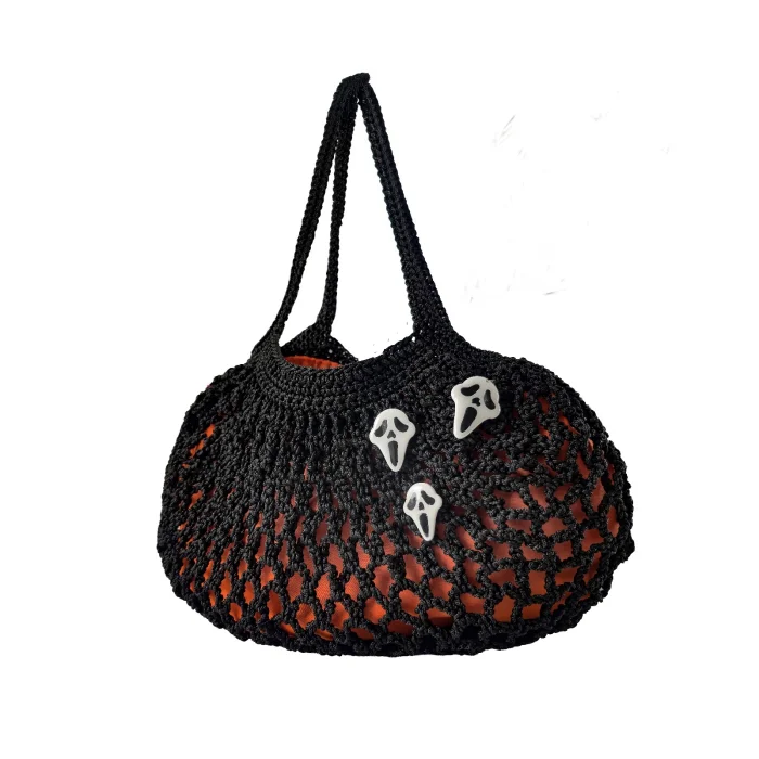 Hand Knitted Halloween Bag – Clay Dough Figure, Lining Detail; It is a special design produced entirely by women's labor and hand knitting technique.