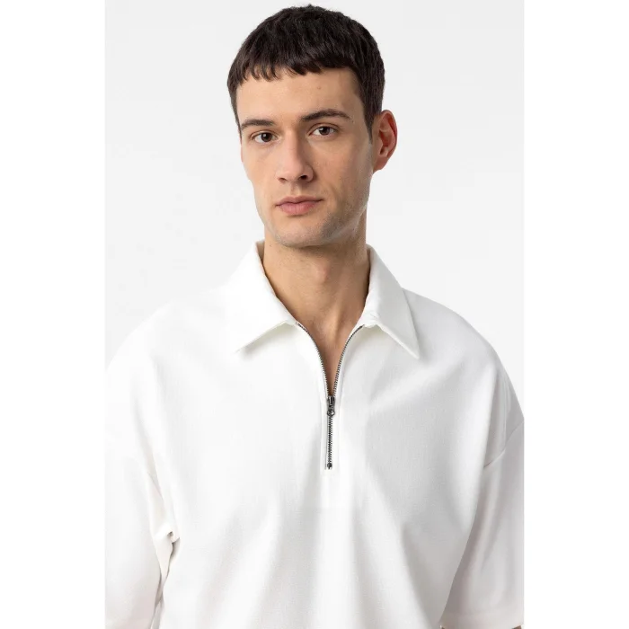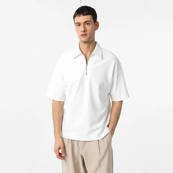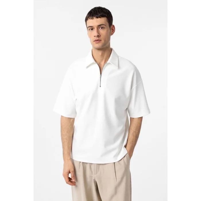 Product: Relax Fit Zippered Polo Neck T-shirt