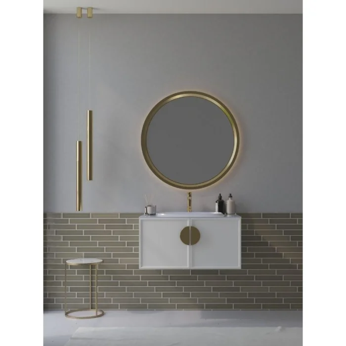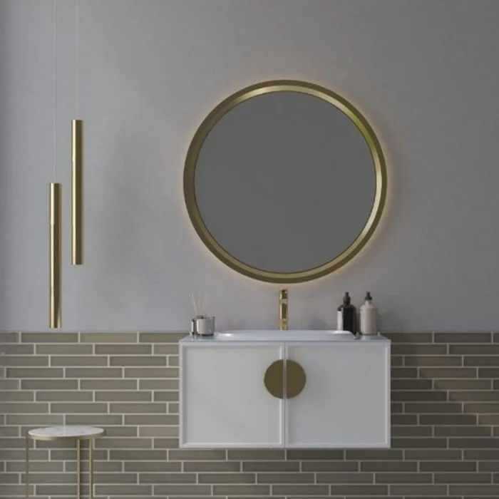 Lam Mirror: Frame Gold Color Tumbled Paint Round