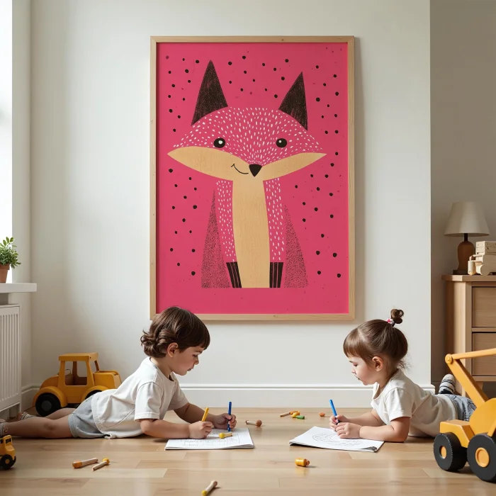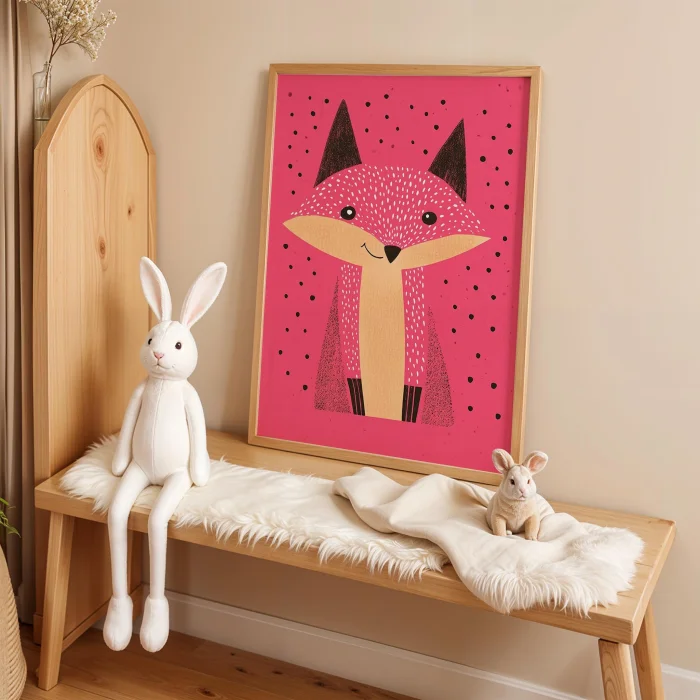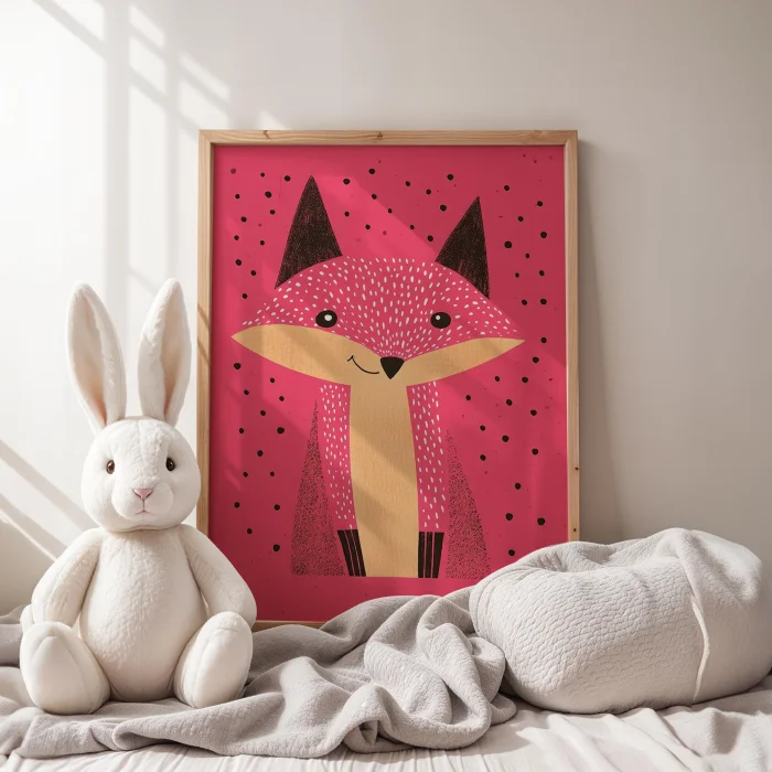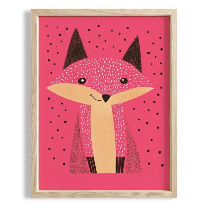 Product: Cute Fox - Fuşya Background Children's Room Wooden Framed Wall Art