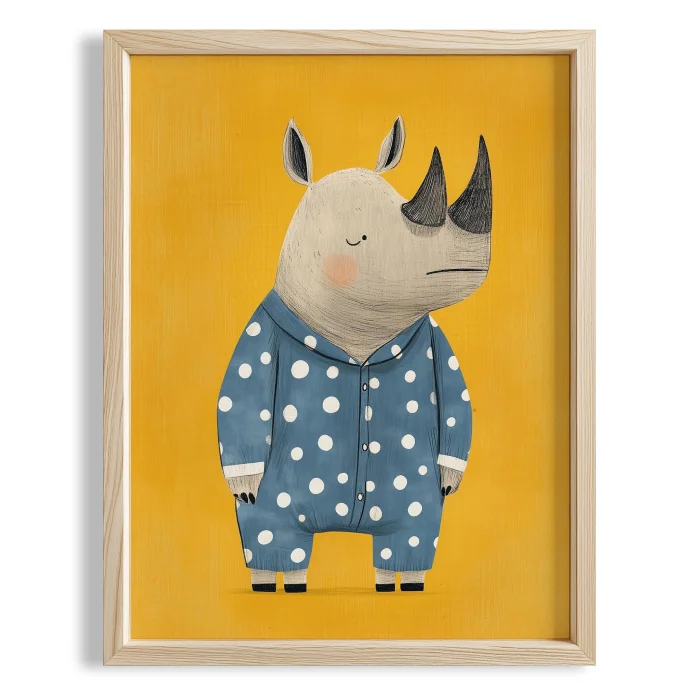 Product: In Pajamas Sleeper Gergedan - Yellow Background Children's Room Wooden Framed Wall Art