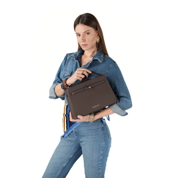• Brown genuine calfskin