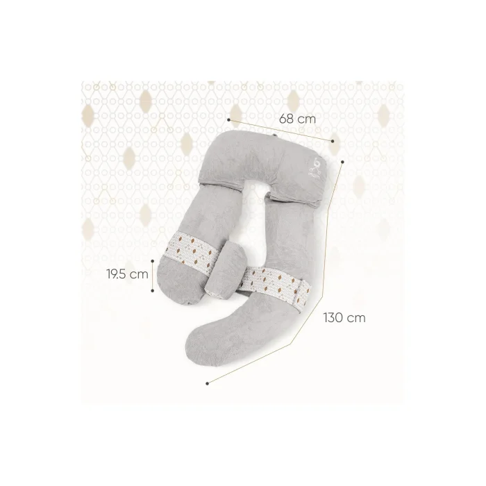 Product Description: Bmom U-Shaped Full Body Pregnancy & Maternity Pillow: Comfort with Bmom from Pregnancy to Maternity! The Bmom U-Shaped Full Body Pregnancy and Maternity Pillow is specially designed to increase the comfort of expectant mothers and new mothers. Made of 100% cotton fabric with the part that comes into contact with the skin, this pillow is both soft and breathable. The cover can be easily removed, so that cleaning can be done practically and quickly. With dedicated support points for the head, shoulders, back and legs, this pillow can be adjusted to your body shape and provides ergonomic support. Standout Features:ICONIC BMOM PATTERN:Add an elegant touch to your room's décor with the sleek and modern Bmom pattern on the pillow. VERSATILE SUPPORT: Comprehensive structure that provides support for the head, shoulder, back, abdomen, leg and ankle. ONE HUNDRED PERCENT COTTON SURFACE: The 100% cotton fabric used in the parts that come into contact with the skin offers a gentle touch to your skin. EASILY REMOVABLE COVER: Hygiene is always at hand with its cover designed for practical use that you can easily remove and wash. CUSTOMIZABLE COMFORT: You can completely separate the shape of the pillow thanks to its zippered connections and customize it according to your own comfort. MULTIFUNCTIONAL USE: It offers the possibility of use in various positions from pregnancy to breastfeeding, even as a comfortable reading pillow. HELPS YOU SLEEP COMFORTABLY: Its U-shaped design helps you find a more comfortable sleeping position, relieves stress and anxiety, and accelerates blood circulation. PORTABILITY: Thanks to its vacuum bag, you can comfortably carry your pillow with you on holidays and travels. POST-OPERATIVE SUPPORT: It is also a very comfortable post-operative pillow for those who have undergone knee, hip, spine or shoulder surgery. Technical Details:Height: 19.5 cm Width: 68 cm Length: 130 cmColor: Gray. For your comfort and convenience in the transition from pregnancy to motherhood, the Bmom U-Shaped Full Body Pregnancy and Maternity Pillow is with you. Every detail of the pillow was designed with the needs of mothers and expectant mothers in mind. With its stylish design, functional features and superior comfort, Bmom offers a pillow that supports your motherhood.