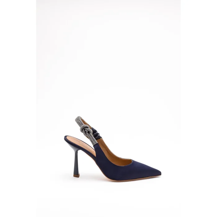 A special model that takes elegance to the top with its elegant satin surface and eye-catching stone band details, and guarantees comfort with its leather inner lining and solid leather sole.