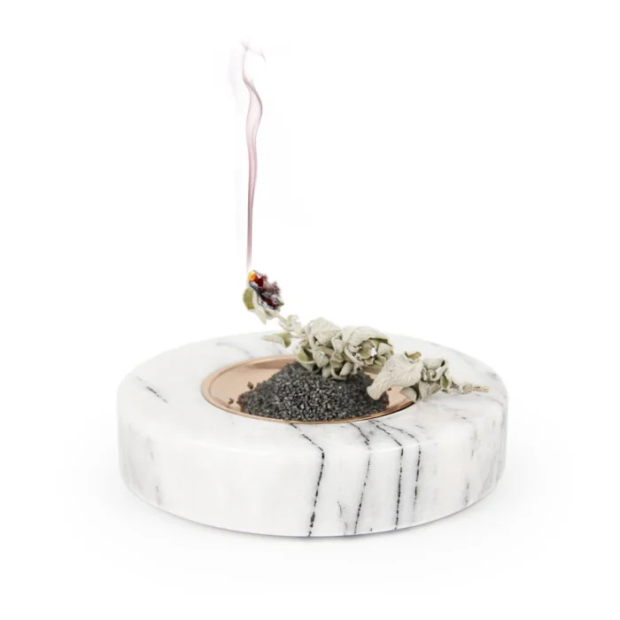 Crystal Circle Marble Incense Plate With Copper Plate