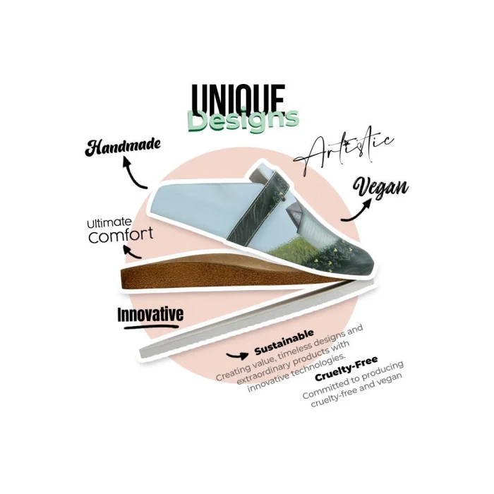 Product: Women Vegan Leather Green Slippers - Going On An Adventure Design