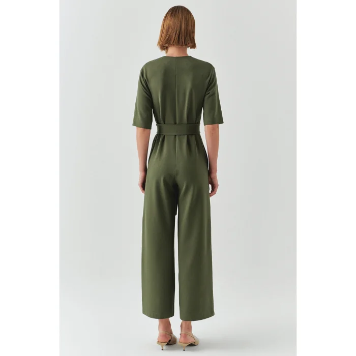 With its soft texture and timeless olive green color, this jumpsuit is a piece that will accompany you at any time of the day. While the belt at your waist creates a special silhouette for you, it never puts comfort in the background with its short sleeves and spacious cut. Whether during a coffee break or dinner... Add some heels and your light will come out along with your self-confidence.