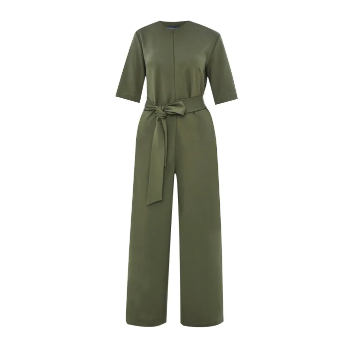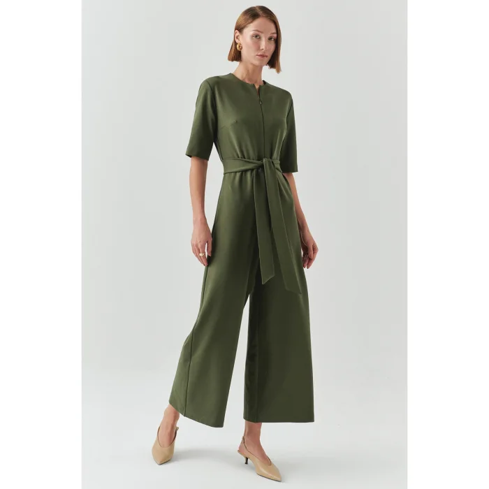 With its soft texture and timeless olive green color, this jumpsuit is a piece that will accompany you at any time of the day. While the belt at your waist creates a special silhouette for you, it never puts comfort in the background with its short sleeves and spacious cut. Whether during a coffee break or dinner... Add some heels and your light will come out along with your self-confidence.