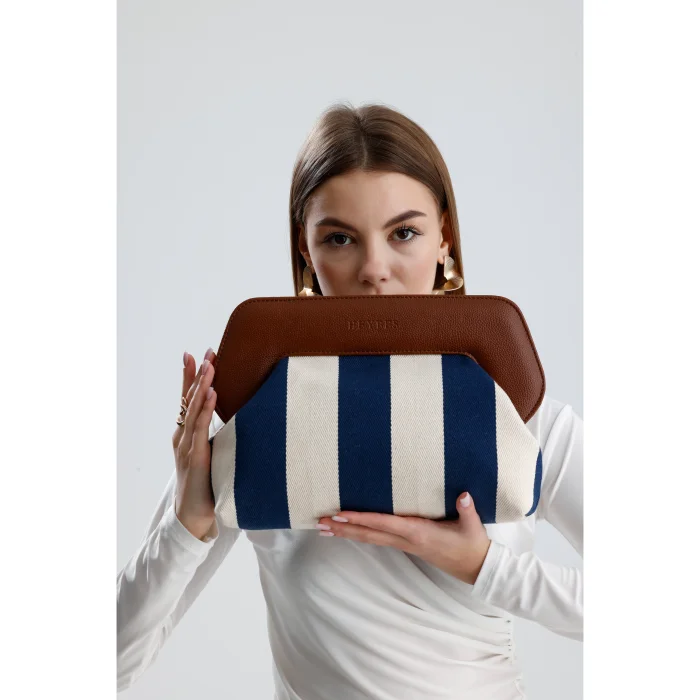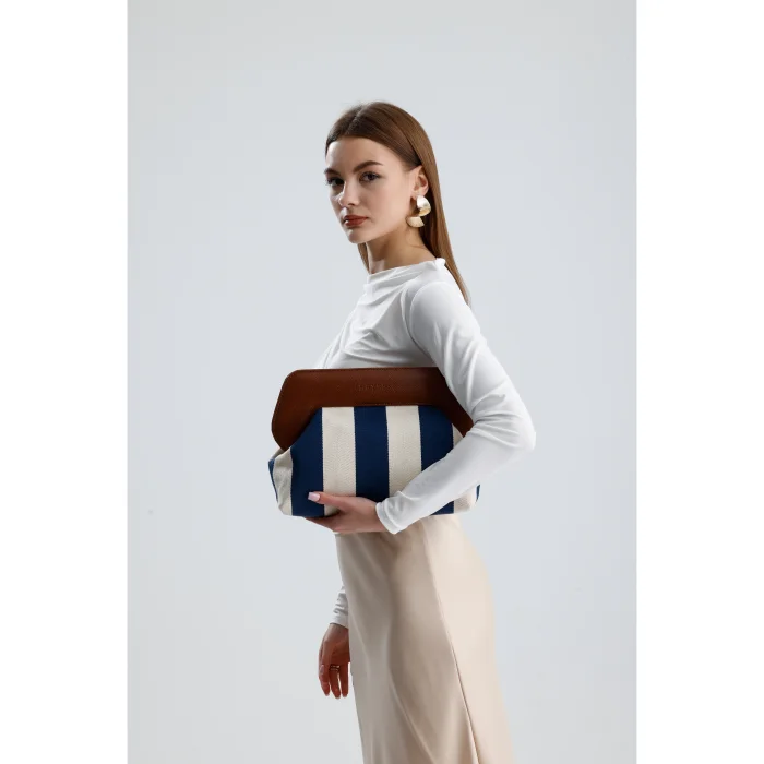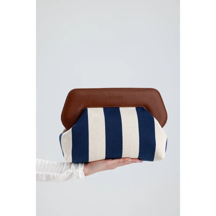Product: Stripe Patterned Canvas Clutch Hand Bag