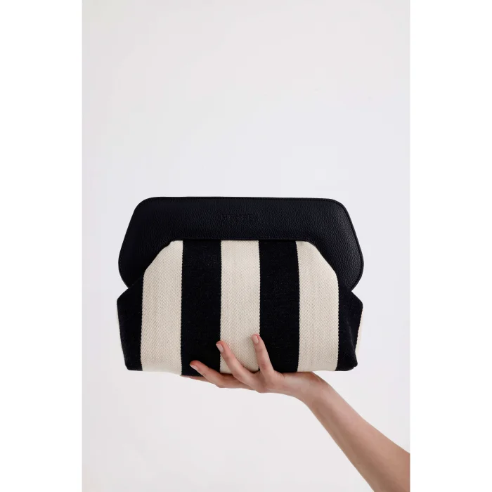 Product: Stripe Patterned Canvas Clutch Hand Bag