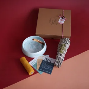 Product: Mora Incense Holder And Energy Starter Set : Palo Santo Wood Incense, Sage Incense Bundle, Beeswax Candle