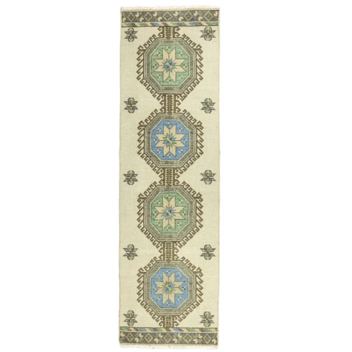 With their striking and aesthetic designs, Soho Antiq rug models will bring a fresh ambiance to your living space! Our long-lasting runner model is made entirely of wool and woven using a special hand-weaving technique. This rug, crafted with skills that ensure its enduring quality even after many years, has a thickness ranging from 1 to 3 cm and measures 75 x 247 cm. The main color of the runner you select from our wide range of color options is beige, with brown tones and multicolor details also incorporated. The runner model embodies cultural and traditional characteristics, with designs reflecting traces of Anatolian history, especially the cultural colors and touches of the Uşak region. You can observe these traditional touches in the rustic pattern of the runner.