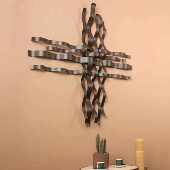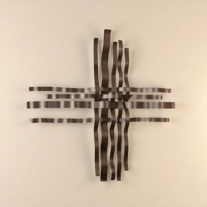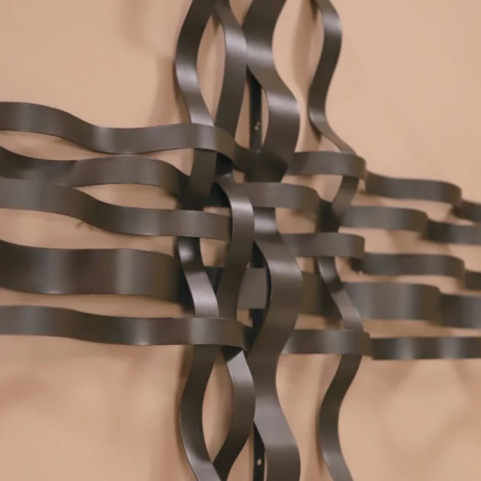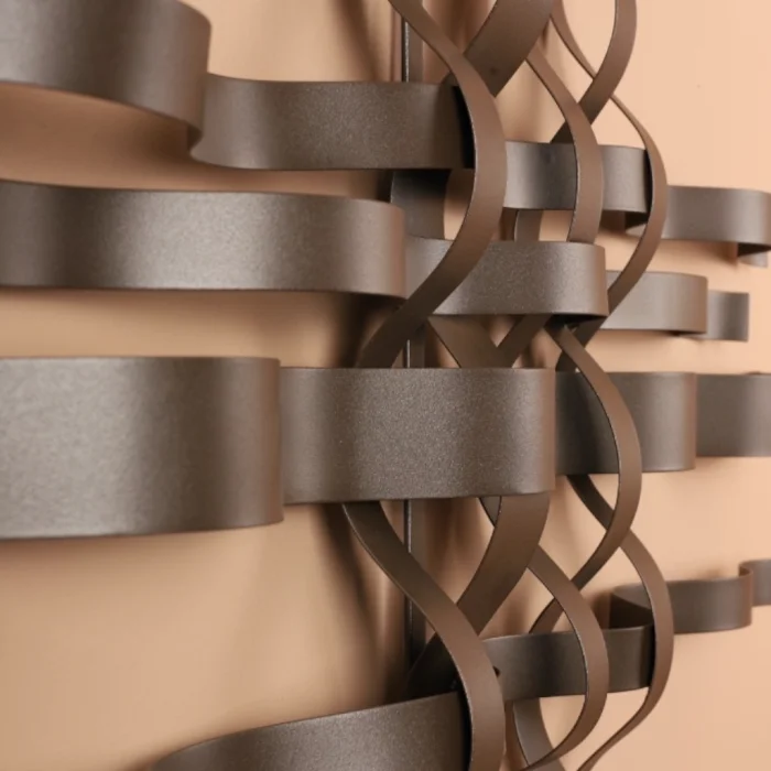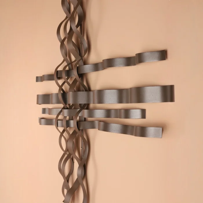 It consists of an amorphous composition consisting of brown static painted sheet metal strips.