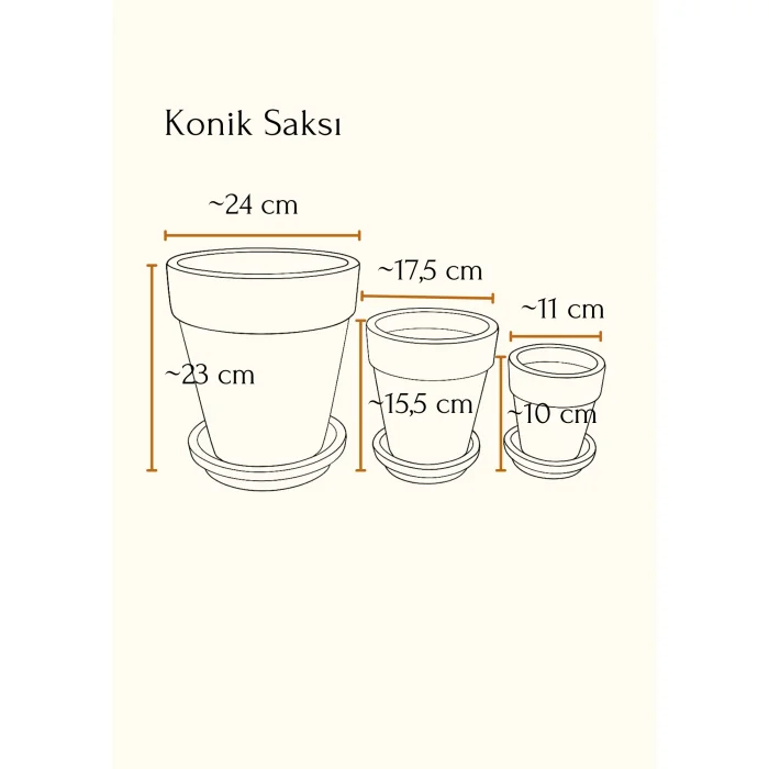 Standing out with its stylish and classic form, the Conical Terracotta Flower Pot is an ideal choice for both indoor and outdoor spaces with its natural structure and functionality. Being handmade and unvarnished, it allows the soil to breathe; Supports the root health of plants. Each pot has a drainage hole and matching plate.