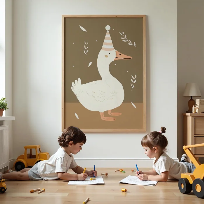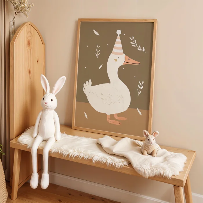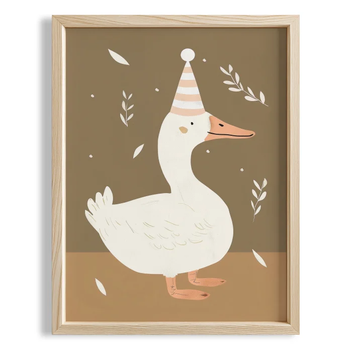 Product: Cute Duck With Party Hat Kids Room Wooden Wall Art