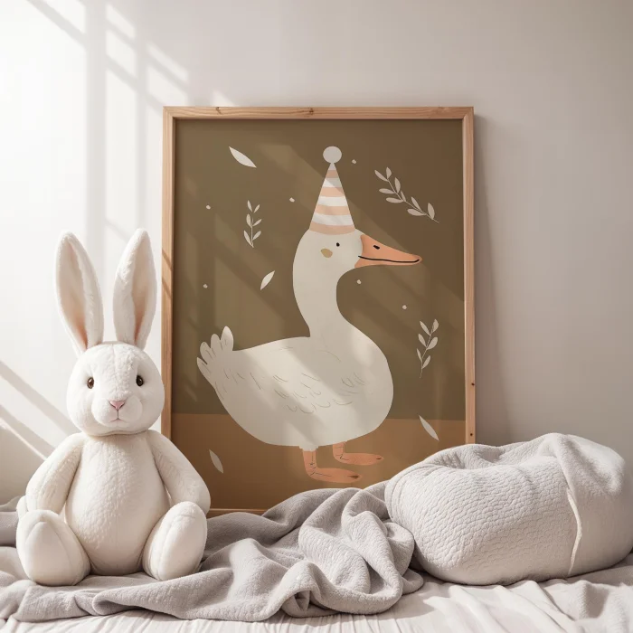 Product: Cute Duck With Party Hat Kids Room Wooden Wall Art