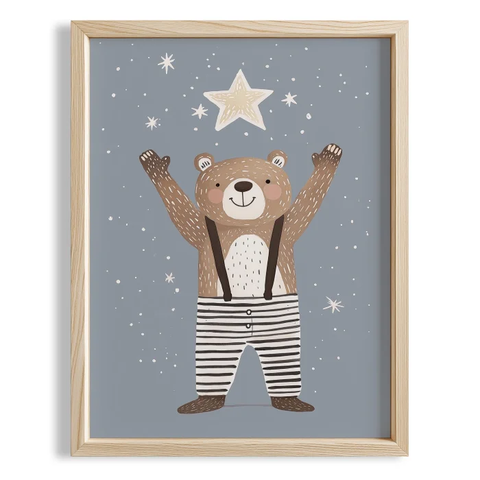 Happy Bear Reaching For Stars Kids Room Wooden Wall Art