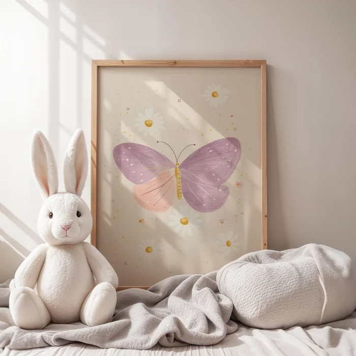 Multicolor Butterflyler Ve Flowersler Children's Room Wooden Framed Wall Art