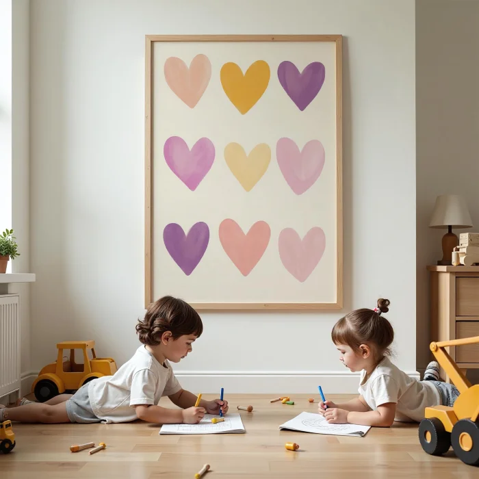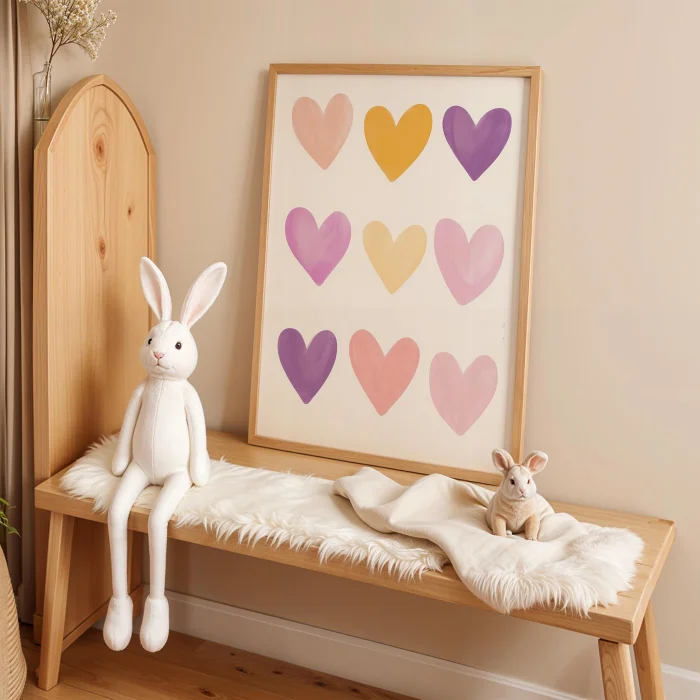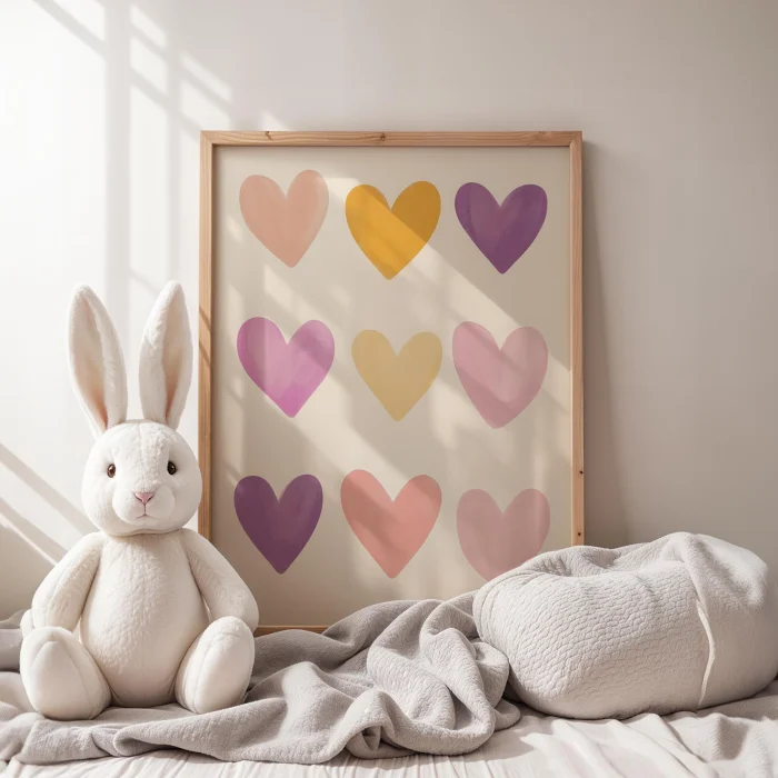 Product: Multicolor Hearts Children's Room Wooden Framed Wall Art
