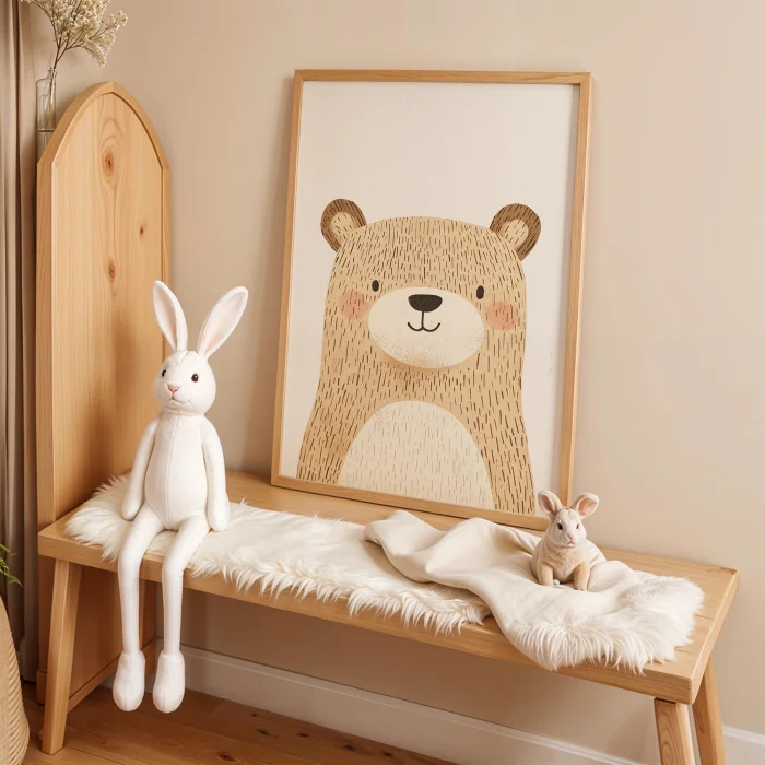 Product: Smiling Furry Teddy Bear Kids Room Wooden Wall Art