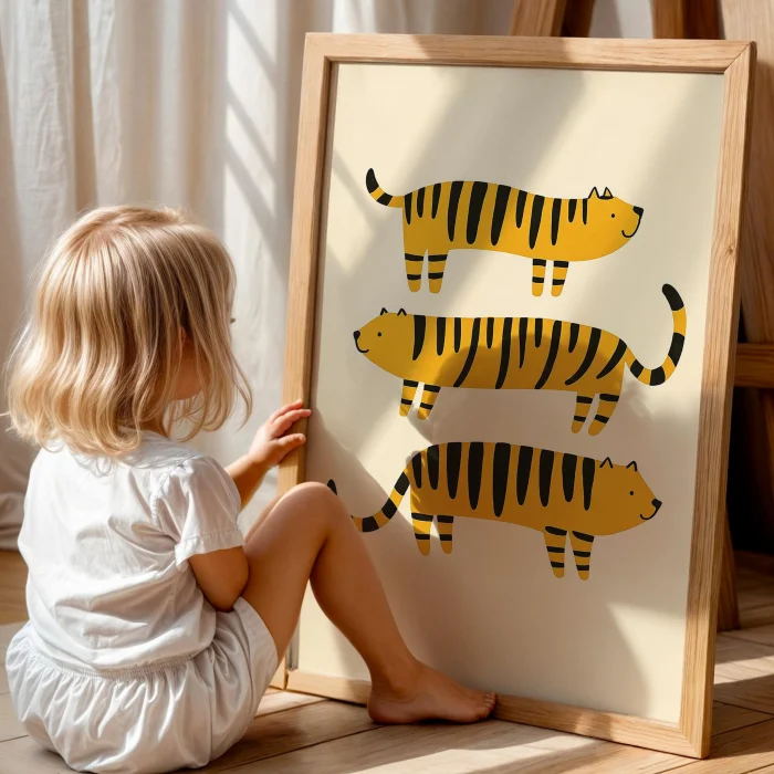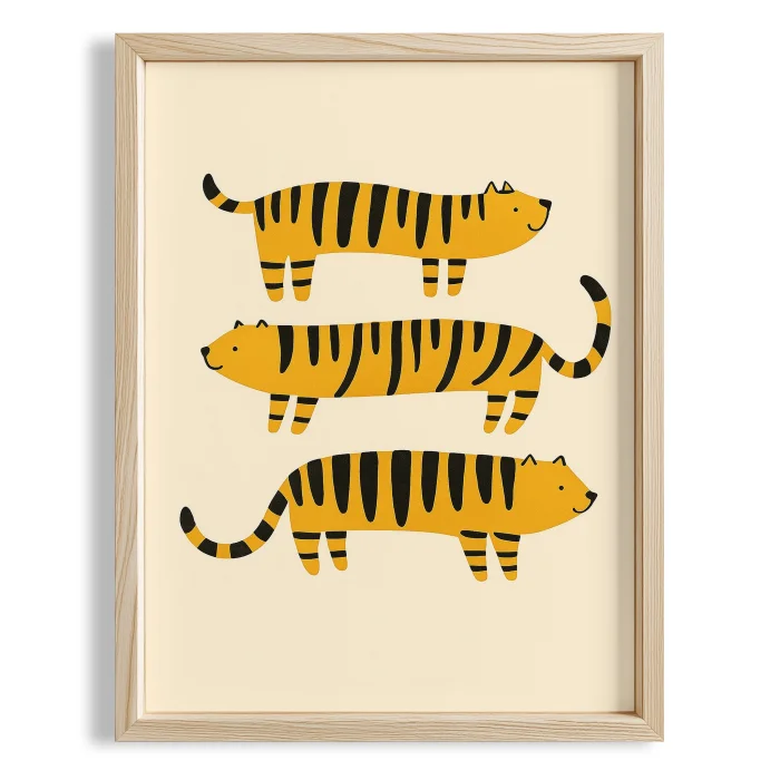 Striped Kaplanlar - Eclectic Style Kids' Room Decor Wooden Framed Wall Art