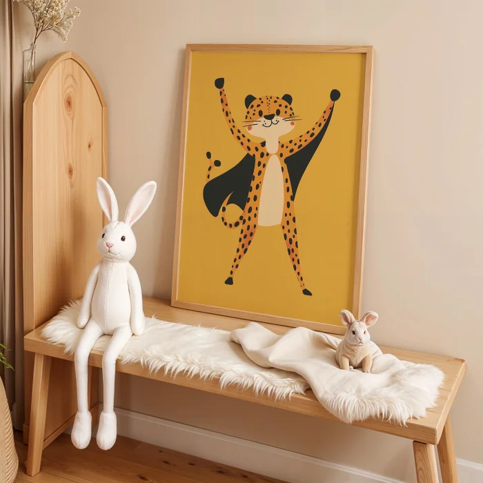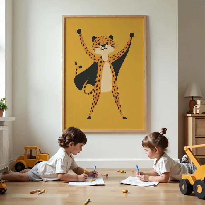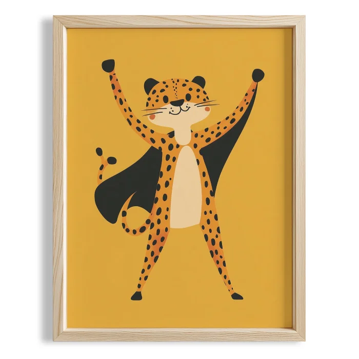Superman Leopard - Yellow Background Children's Room Wooden Framed Wall Art