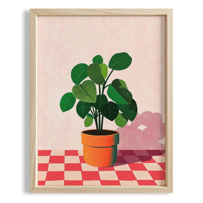 Yeşil Saksı Bitkisi Geometrik Zemin - Wall Art