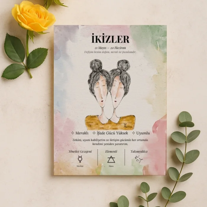 Known for its ever-changing spirit, curiosity, and gift of communication, Gemini… This modern zodiac poster captures the intelligent and adaptable energy of Gemini in soft pastel watercolor tones.
