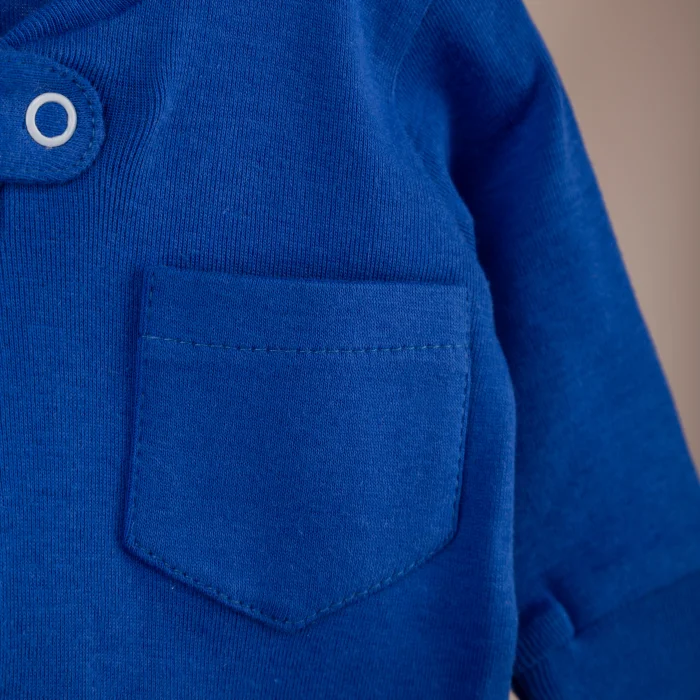 A stylish and functional option suitable for your baby's sensitive skin, the Double-Sided Zippered Booties Sax Blue Jumpsuit with Pockets stands out with its elegant design and high-quality workmanship. It offers practicality in daily use and nobility on special occasions.