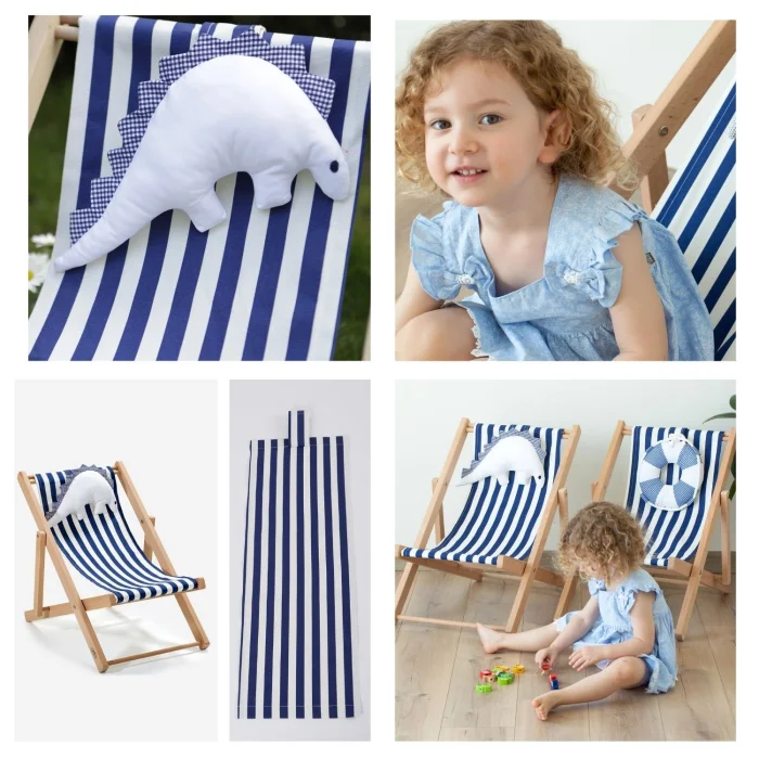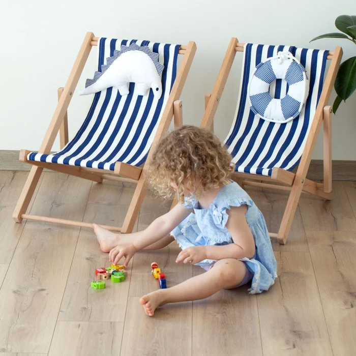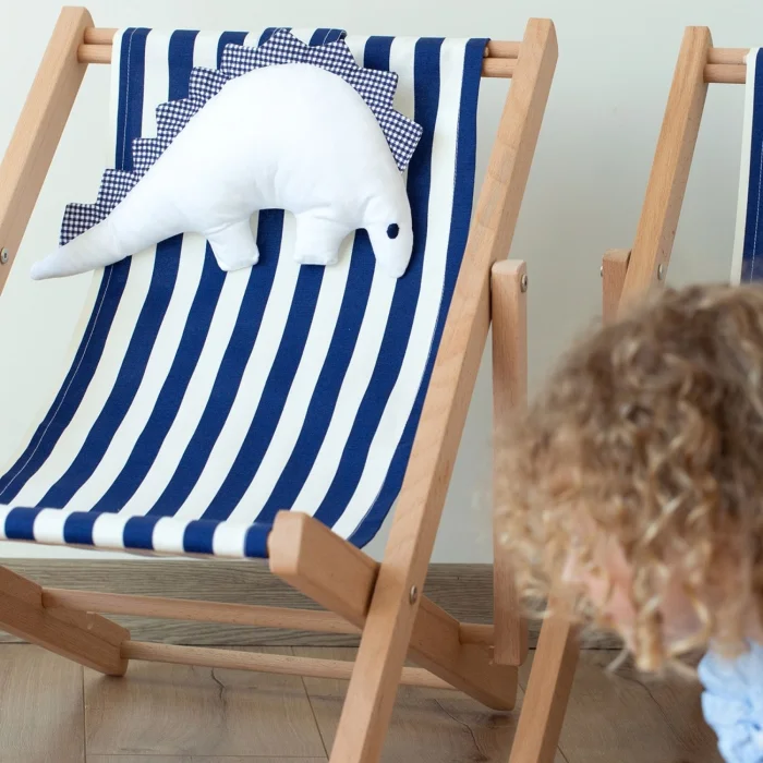 Two-stage solid wood fun natural child lounge seat. Dino pillow and grey-white striped cushion included. You can use our children's chair in both ways, reclining backwards and upright in a sitting position. Open-Close & Disassembled-Mounted. It is an easy-to-carry, practical sunbed type long chair. Mobile furniture, I go everywhere with you. I'm with you at home, at school, on vacation. Frame natural solid wood child seat size, 42.5*64.5*h:59cm. Actual weight 2,7Kgr. Parcel weight 3,8Kgr.Dino pillow is fiber-filled, grey and white spines striped, cotton thread hand embroidery on the eye. Dino pillow toy size, Width 34cm. Height 22cm. Depth 7cm. and 70gr. weight. Child seat cushion grey-white striped - interior upholstery fabric details: Lenght 91,5* Width 32cm./111gr. Product: Natural Child Seat