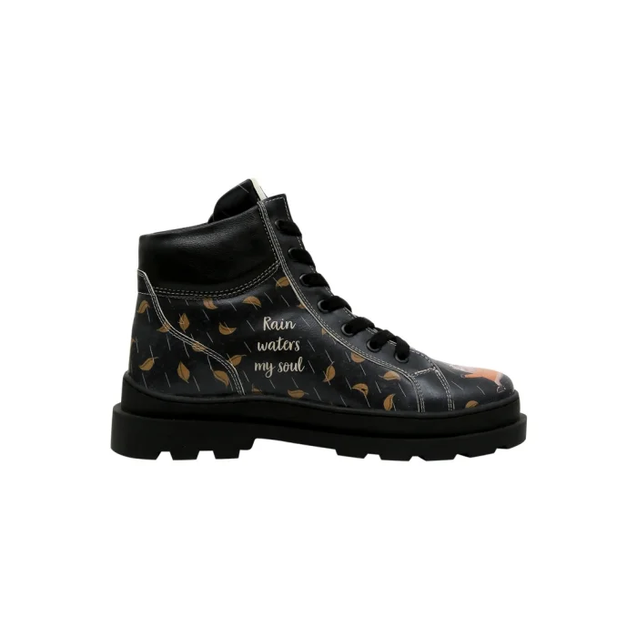 Product: Women Vegan Leather Black Ankle Boots - Rain Waters My Soul Design