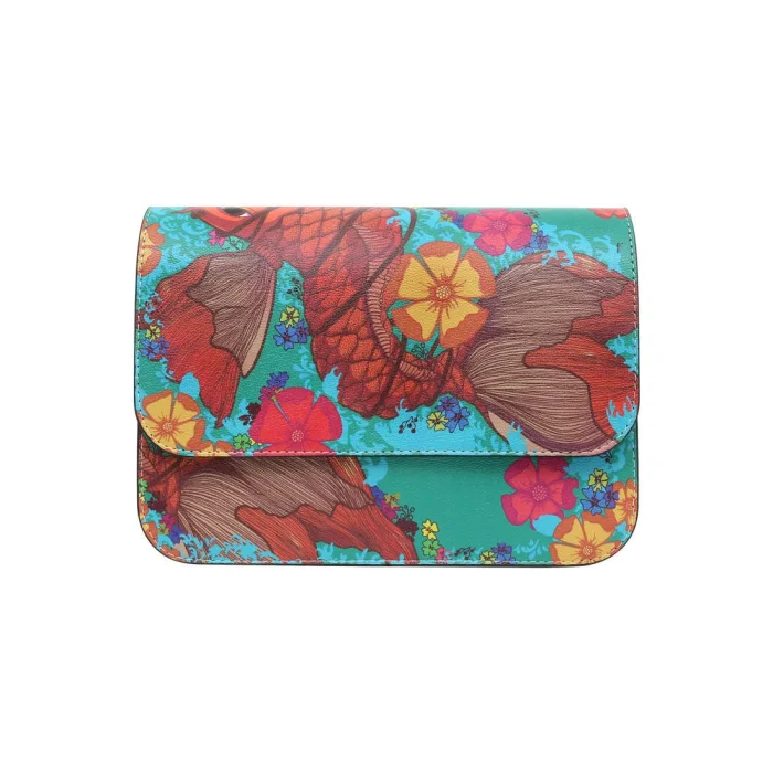 Product: Women Vegan Leather Purse - Waves Of Koi Design