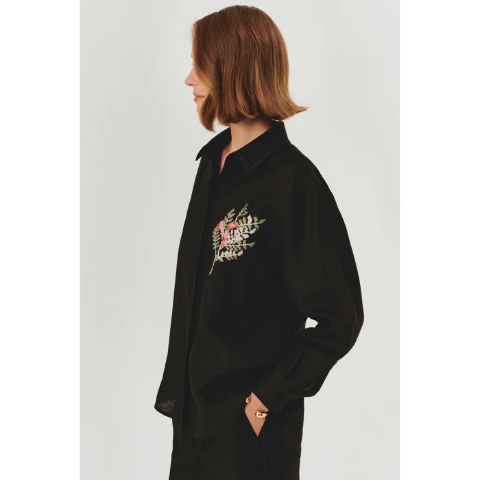 Product: Embroidered Detailed Comfortable Fit Pure Linen Shirt