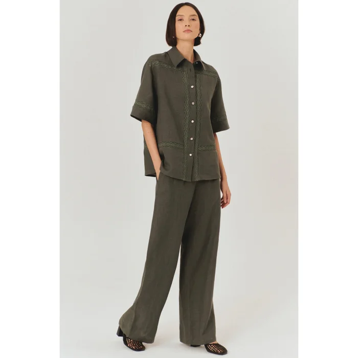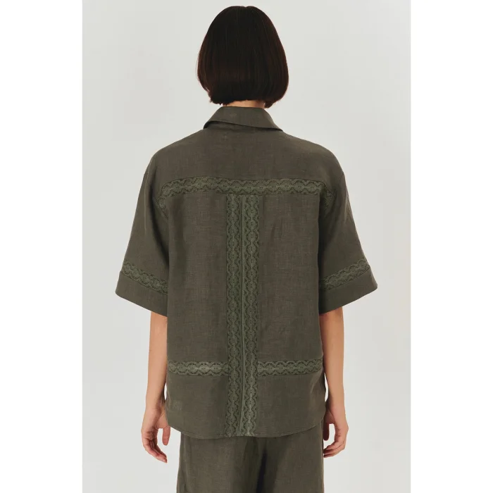 Product: Lace Detailed Comfortable Fit Pure Linen Short Sleeve Shirt