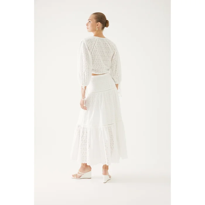This shirt, which hugs the body and highlights your waist with its waist-tied design, also adds a feminine atmosphere with its lace details. This shirt, which fits perfectly with every combination with its white color reflecting the energy of summer, makes elegance natural.