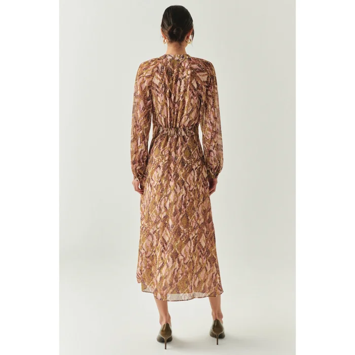 Regular Midi Dress With Tie-down Collar And Waistline And Lining